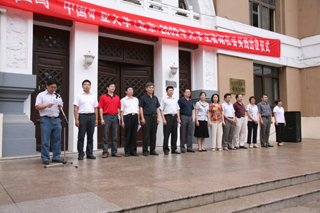 7月8日,在我校百年华诞倒计时100天之际,学校在民族楼广场隆重举行“我爱我的祖国” 2009年大学生暑期社会实践活动出征仪式。校党委书记杨仁树、校党委副书记朱书全出席仪式。党委宣传部、发展规划处、学生工作处、校团委、各学院党总支负责人以及暑期社会实践团学生代表共300余人参加了出征仪式。