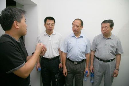 随后,指导检查组来到位于中关村能源与安全科技园的“深部岩土力学与地下工程”国家重点实验室。实验室主任何满潮向指导检查组介绍了实验室建设的过程,在了解到该实验室的一期工程是我校学习实践活动边学边改的重要成果,已经得到国内外专家的广泛赞誉之后,指导检查组领导对我校开展学习实践活动过程中求真务实的态度表示了赞许。何满潮详细介绍了深部软岩工程破坏过程模型实验系统、深部硬岩岩爆过程实验系统、深部滑面效应及其滑坡灾害监测实验系统等,演示了汶川地震力学作用过程模拟实验,特别介绍了地质灾害远程实时监控系统如何对远至新疆、甘肃的现场进行实时监控,指导检查组饶有兴致地观看了相关实验录像。
