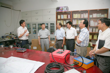 7月1日上午,教育部部属高校深入学习实践科学发展观活动指导检查第二工作组组长、四川大学原党委书记卢铁城,指导检查组副组长、江南大学原校长陶文沂、中国教育电视台党委书记、副台长黄百炼,指导检查组联络员、教育部政法司办公室副主任王家勤,工作组成员常建勇、刘春晓、邓益一行,在我校党委书记、校深入学习实践科学发展观活动领导小组组长杨仁树的陪同下,考察了我校“煤炭资源与安全开采”、“深部岩土力学与地下工程”两个国家重点实验室。