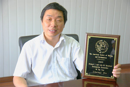 日前,我校地球科学与测绘工程学院土地复垦与生态重建研究所所长胡振琪教授荣获美国采矿与复垦学会(简称ASMR)2009年度“ASMR土地复垦科技贡献奖”,这是中国也是北美以外第一个土地复垦学者在美国ASMR上荣膺榜单,也是中国土地复垦学者在世界范围内获得的第一个大奖。