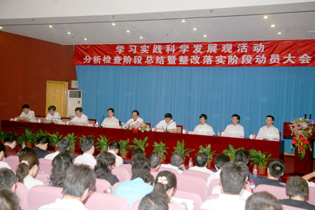 在全校上下沉浸于百年校庆文化盛典――孙越崎先生铜像揭幕仪式的喜悦中,6月16日,我校学习实践科学发展观活动又迎来了新的阶段,正式转入整改落实阶段。当日下午,学校在国际交流中心学术报告厅隆重举行深入学习实践科学发展观活动分析检查阶段总结暨整改落实阶段动员大会。总结分析检查阶段工作成果,部署整改落实阶段主要工作。
