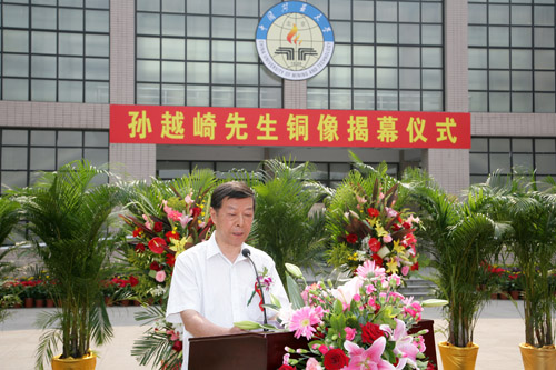 中国煤炭工业协会副会长赵岸青代表中国煤炭工业协会高度评价了孙越崎先生为国家和人民不懈奋斗的一生。他表示,孙越崎先生铜像的揭幕,不仅是我校这一百年学府的一件大事,更体现了矿大人乃至煤炭人对孙越崎先生由衷的敬仰和热爱。他希望我校能够进一步发扬孙越崎先生脚踏实地的敬业精神和崇高的爱国思想,充分发挥人才、科技和学科的优势,继承优良的办学传统,走“特色加精品”的发展之路,切实从能源工业和安全科技发展需要出发,为我国能源工业特别是煤炭工业实现节约发展、清洁发展、安全发展以及可持续发展贡献力量。