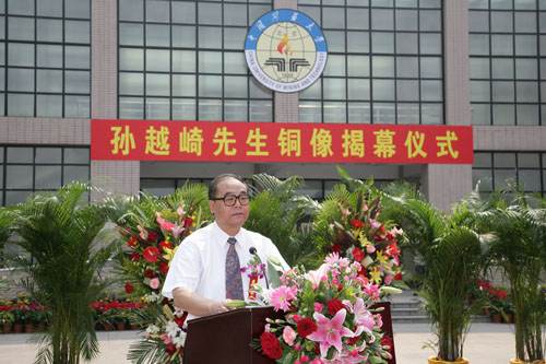 孙越崎先生的次子孙大武先生在揭幕仪式上代表孙越崎家属对我校举行揭幕仪式表示衷心的感谢,并深情回顾了父亲极不平凡的一生。他表示,父亲一生爱国敬业,早年参与领导爱国学生运动。抗日战争爆发后,他将焦作中福煤矿迁往大后方,供应陪都重庆一半的煤炭需求,并在甘肃玉门创建新兴的石油工业,缓解了当时极为严重的油荒。1949年,时任行政院政务委员、经济部长和统管全国国有工矿企业的资源委员会委员长,甘冒生命危险,把近千家大、中型企业和三万技术和管理人员完整移交给共产党,建立了历史性的功勋。他特别讲述了父亲与中国矿业大学的不解之缘,担任焦作工学院董事会董事长期间积极为学校的发展和运行提供经费,并常到学校讲演,宣传实业救国。孙大武衷心祝愿我校再创辉煌成就。