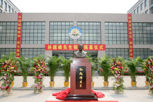 六月的校园,生机勃勃,教学实验楼广场,充溢着百年矿大的厚重文化,“弘扬越崎精神、谱写能源华章,传承百年文化、再创矿大辉煌”的横幅格外引人瞩目。1952年6月15日,中央政府批准中国矿业学院由天津迁至北京,从而掀开了中国矿业大学发展史上的新篇章。57年后的今天,6月15日上午,我国工矿泰斗孙越崎先生铜像揭幕仪式在中国矿业大学(北京)隆重举行。国内煤炭、石油、教育等各界有关人士、孙越崎家属代表以及我校千余名师生共同见证了这一激动人心的时刻。