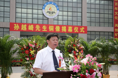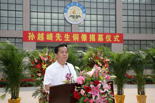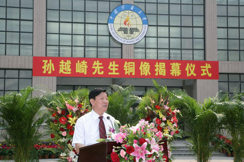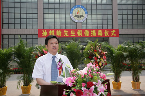 教育部直属高校工作司副司长牛燕冰代表教育部对我校举行孙越崎先生铜像揭幕仪式表示热烈祝贺。他指出,孙越崎先生坚贞不渝的爱国精神、艰苦奋斗的创业精神和迎难而上拼搏精神,是激励矿大全体师生员工为建设多科性、研究型、开放式高水平大学而努力的精神动力。他高度评价了我校为我国高等教育事业发展贡献的重要力量,为国家建设特别是能源工业和安全生产事业发展做出的突出贡献,表示教育部将支持我校的建设和发展,从政策、资金等方面给予全力支持。同时请国家安全生产监督管理总局、孙越崎教育基金会及煤炭工业机构、大型煤炭企事业单位等继续对学校的发展给予有力支持,通过部局联合共建,促进我校在今后的发展道路上越走越好。