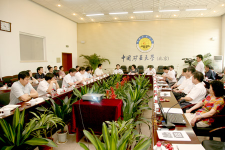杨仁树围绕我校的基本情况和学习实践科学发展观、党建和思想政治、党风廉政建设的工作情况进行了汇报。杨仁树表示,在学习实践活动中,我校坚持统一思想聚人心,多管齐下抓学习,求真务实搞调研,广开言路征意见,深刻批评见坦诚,撰写报告求扎实,边学边改抓落实,紧紧围绕规划、就业、干部等关键问题,在特色上下功夫、做文章,走科学发展之路,走特色强校之路;我校把党建和思想政治工作作为学校各项事业发展的生命线,大力加强党的先进性建设,为学校的改革、发展和稳定提供了坚实的思想、政治和组织保障;我校按照“强化教育,完善制度,规范管理,严格监督,注重预防,严惩违纪”的工作思路,认真贯彻落实党风廉政建设责任制,全面构建教育、制度、监督并重的惩治和预防腐败体系,为学校事业又好又快发展提供强有力保障;杨仁树表示,学校的未来发展目标是建设矿业与安全学科特色鲜明、优势明显,在国内外有重要影响的多科性、研究型、开放式高水平大学。校长乔建永介绍了学校的光辉历史和专业特色,表示近年来学校用快速发展的事业来温暖师生员工的心,通过树正气的方法打造良好的校风,将日常工作和党风廉政建设并轨发展。乔建永还表示,我校即将迎来百年校庆,学校将会围绕学校的百年历史开展一系列的学术文化活动,积极促进学校发展。