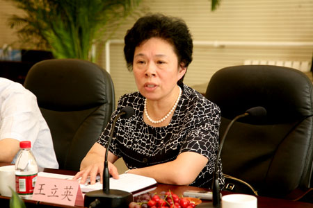 在认真听取了汇报之后,王立英作了重要讲话。因我校曾在四川省合川县(现划归重庆市)办学,身为重庆人的王立英表示来到矿大倍感亲切,而矿大更是她完成对四川、陕西等地院校的调研后,回到北京走访的第一所高校。她表示,我校在百年的历程中艰苦创业、无私奉献,注重学科建设、科研水平的提高和教师队伍建设,强调党的建设和党风廉政建设,对支持国民经济建设作出了重大贡献,并对我校在深入学习实践科学发展观活动中取得的成绩表示肯定。