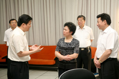 李胜利、贾德永在听取我校领导汇报后,高度评价了我校发展所取得的成绩,对学校艰苦奋斗的创业精神和迎难而上的拼搏精神给予了充分肯定,并表示希望我校能够通过深入学习实践科学发展观活动的开展,取得实效,推动学校科学发展。