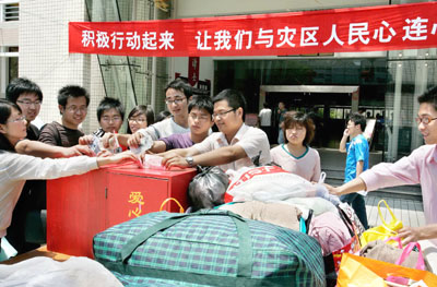 四是通过多种形式支援灾区抗震救灾工作。今天,清华大学紫荆学生公寓学生服务楼前,长长的队伍蜿蜒数百米,几百名师生赶来,参加无偿献血的活动。今天一早,山东大学齐鲁医院、第二医院已派出医疗急救队,携带急救药品,赶赴四川汶川灾区支援抗震救灾工作。兰州大学附属医院组织了18名业务骨干,随时听候卫生部调遣,并已准备好总价值40万元的药品、医疗器械、生活保障品等救灾物资。学校一院组成的第二支救灾医疗队,准备开赴甘肃省受灾较重的陇南地区。上海交通大学医学院向上海市政府和市卫生局递交了请战书,请求组建救援医疗队,赴抗震救灾前线,为抢救伤员、协力开展抗震救灾工作贡献力量。目前上海交大医学院附属新华医院和第九人民医院已紧急组建救援医疗队,随时待命前往灾区开展抗震救灾活动。吉林大学召开紧急协调会议,积极筹备药品,组建3支医疗队共计64名医生待命开赴灾区。北京中医药大学迅速组建医疗服务队原地待命,随时准备赶赴灾区投入医疗救护工作。东南大学附属中大医院组成有4名医生和4名护士参加的医疗小组,正赶赴震区参与救援。江苏省南京医科大学等院校表示,随时可以根据上级主管部门要求,派出医疗小分队奔赴灾区。同济大学积极组织相关专家对抗震建筑、震后建设以及防疫等问题进行研究,为当地政府抗震救灾提供决策依据。湖南大学决定成立暑期三下乡社会实践服务队,赴受灾地区帮助灾区人民开展重建工作。