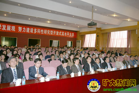 校党委副书记朱书全的调研报告题为《加强服务与引导,凝炼矿大精神,培养高素质人才——关于学生工作的调研报告》,介绍了学生工作系统学习实践科学发展观的基本情况,对我校学生工作做出了总体判断,表示我校已经初步建立起较为完善的学生工作体系,学生教育与管理不断规范、加强学风建设的机制初步形成,就业、资助等工作扎实有效、稳步推进。同时朱书全重点介绍了学生工作机制尚不完善、学风建设长效机制尚待进一步健全、就业工作仍需进一步加强、学生综合素质培养与学生需求有一定差距等目前制约学生工作科学发展的问题,并针对这些情况提出了具体的措施与对策。