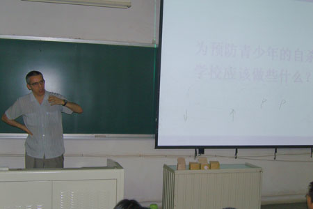 5月26日下午,北京心理危机研究与干预中心执行主任费立鹏教授,应邀在民族楼334室做题为《如何识别与帮助有心理危机的学生》的讲座。心理健康教育与咨询中心老师和我校学生100余人聆听了讲座。