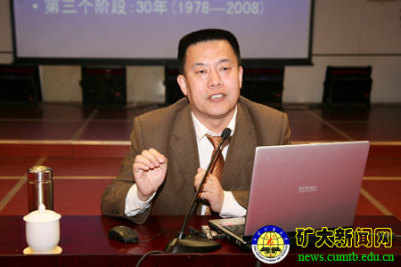 在谈到党员领导干部落实科学发展观存在的新情况新问题时,张荣臣教授提出了三大挑战性问题:第一,由革命党到执政党不仅意味着党的地位的变化,还要求党的理念和活动方式要跟着转变;第二,由领导计划经济到领导市场经济,不仅意味着经济结构的转型,还要求党要正确处理好一元和多元的关系;第三,一个正在领导市场经济的执政党,必须防止权力延伸到市场经济资源的配置中去。张荣臣教授结合三鹿奶粉、齐二药食品安全事件,贵州瓮安、云南孟连、甘肃陇南重大群体性事件等近期热点新闻以及数十张图片对这三大问题展开了具体的阐述。