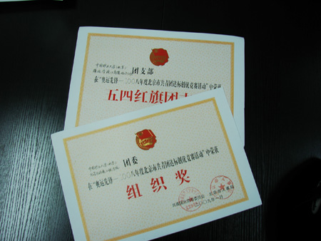 “奥运先锋——二00八年度北京市共青团达标创新优竞赛活动”组织奖: