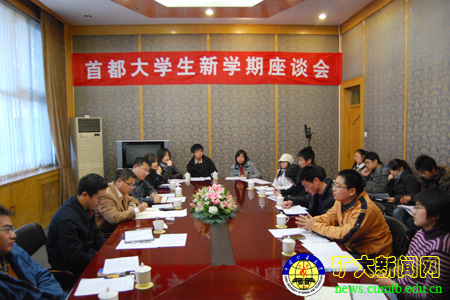 2月25日下午,团北京市委大学部、北京市学联秘书处在我校组织召开了首都大学生新学期座谈会。团北京市委大学中专部部长胡九龙,我校团委书记杨庆舟出席会议,来自清华大学、北京大学、人民大学、北京师范大学以及我校在内等首都高校的学生代表20余人参加了座谈。