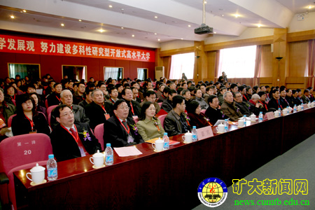 这次大会的主题是:高举中国特色社会主义伟大旗帜,以邓小平理论和“三个代表”重要思想为指导,深入学习实践科学发展观,继续解放思想,抢抓机遇,求真务实,开拓创新,全面推进学校事业又好又快发展,为把学校建设成为具有矿业和安全特色、在国内外有重要影响的多科性、研究型、开放式高水平大学而努力奋斗。