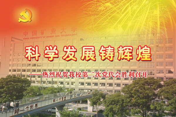 在新的历史起点上,让我们更加紧密地团结在以胡锦涛同志为总书记的党中央周围,高举中国特色社会主义伟大旗帜,全面贯彻落实科学发展观,继续发扬艰苦奋斗的创业精神和迎难而上的拼搏精神,求真务实,埋头苦干,为把我校建设成为在国内外有重要影响的多科性、研究型、开放式的高水平大学而努力奋斗,以优异的成绩迎接新中国成立60周年,以更加昂扬的姿态和坚实的步伐迈入中国矿业大学的第二个百年。