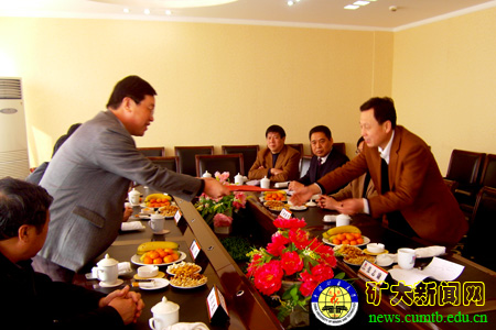 副校长范迅与西山煤电集团有限责任公司党委书记车树春交谈