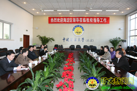 刘恪在交谈中说,为保证海淀区安全稳定等各项工作,海淀区领导定期带队走访区域发展倡导单位,通过基层走访,掌握民情,了解民意,确保海淀区的安全稳定和和谐发展。她指出,在2008年北京奥运会期间,中国矿业大学(北京)和区内其他单位一道,为保证北京市和海淀区的社会发展和经济建设做出了积极贡献。矿大(北京)作为国家重点大学,在海淀区快速发展中发挥了重要作用,希望今后能继续保持积极的态度,为推动海淀区经济文化事业的发展建言献策。刘恪在会上还简要介绍了2008年海淀区的经济社会发展情况。