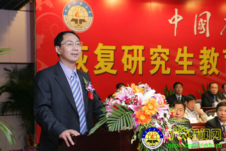 教育部直属高校工作司副司长贾德永代表教育部对学校恢复恢复研究生教育30周年表示祝贺,同时对关心、支持学校发展的各部门、各企业和社会友人表示感谢。他充分肯定了学校三十年发展取得的成绩,希望学校继续发扬优良的办学传统,坚持走“特色”发展之路,为实施科教兴国、科教兴安战略,为国家和地方的经济建设贡献出新的力量。教育部将始终不渝地从政策、资金等方面支持支持学校的建设和发展。