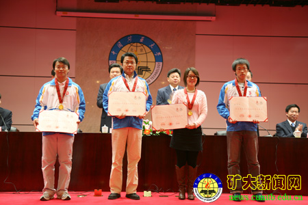 范迅宣读了《关于表彰中国矿业大学(北京)奥运工作先进集体、先进个人的决定》,决定对获得北京市各类奥运工作先进集体和个人予以通报表彰,授予管理学院等7个学院校级志愿者工作优秀组织奖,授予工体赛会志愿者观众服务16班等12个团队校级优秀志愿者团队,授予白云鹤等31人校级奥运工作先进个人,授予童军武等144人校级志愿服务标兵,授予张蕊等291人校级优秀志愿者。随后与会校领导为获奖单位及个人颁奖。