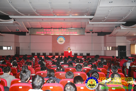 10月21日下午,我校2008年秋季暨第19期党校业余培训班在矿大科技会堂开班,有410余名入党积极分子参加培训。校党委副书记、党校校长朱书全教授为党校作了题为《党的指导思想》的报告。