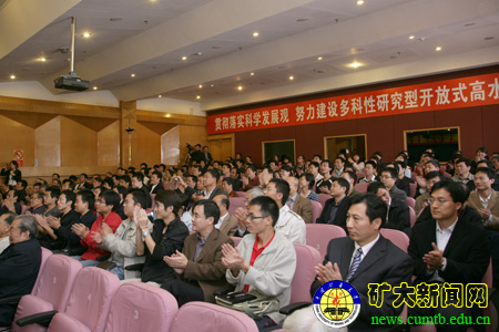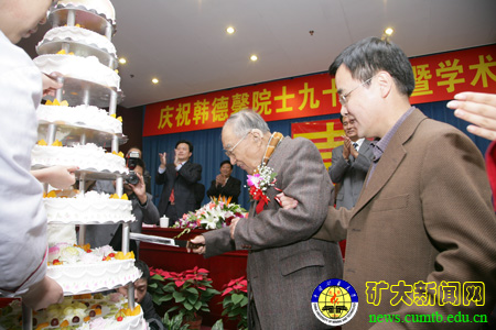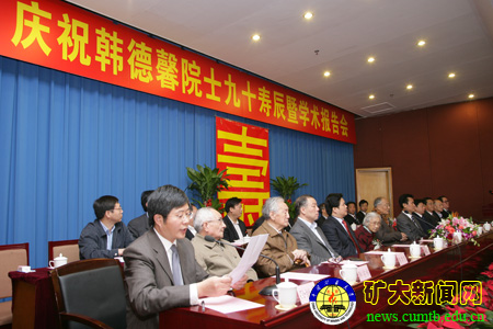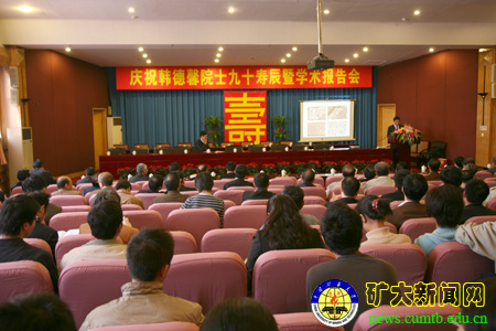 庆祝活动前,学校还举行了学术报告会。彭苏萍院士介绍了“韩德馨能源地学教育基金会”筹备情况,代世峰、曹代勇、金奎励三位教授分别做了学术报告,介绍了自己研究领域的最新成果。学术报告会由资源与安全工程学院院长王家臣主持。
