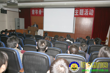 会谈后,Ramani院士在民族楼135报告厅做了一场题为《US Mine Health and Safety》的专题学术报告。报告围绕美国采矿领域的安全问题展开,通过一系列图表和数据回顾了过去100年来美国在控制采矿安全方面取得的进展,并介绍了安全文化的理念。浅显易懂、富有说服力的演讲,博得了现场师生的阵阵掌声。