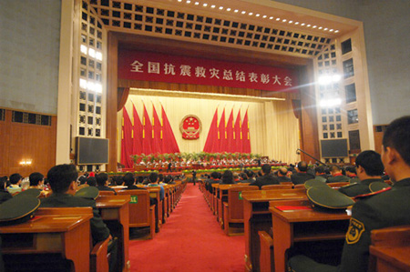10月8日,中共中央、国务院、中央军委在人民大会堂隆重举行全国抗震救灾总结表彰大会。中共中央总书记、国家主席、中央军委主席胡锦涛在会上发表重要讲话。吴邦国、贾庆林、李长春、习近平、贺国强、周永康等国家领导同志出席了大会。包括我校40名学生代表在内的社会各界人士数千人参加了大会。