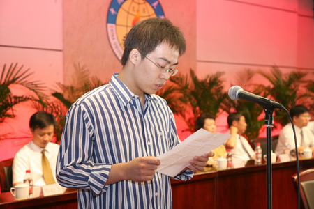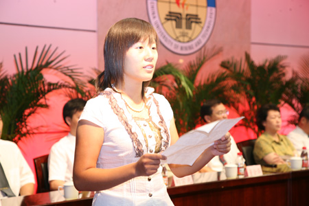 教师代表、化学与环境工程学院徐志强教授,在校学生代表、机电与信息工程学院2006级硕士生杨阳同学,新生代表、理学院申利飞同学先后在典礼上发言。