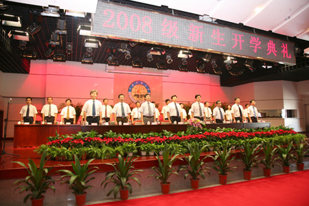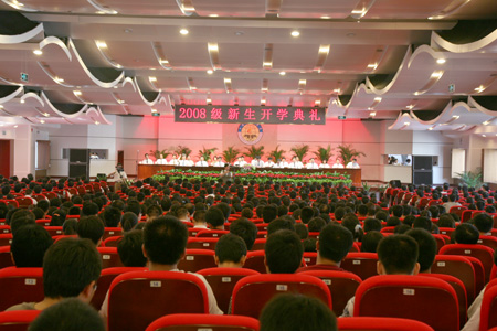 9月5日上午10:00,刚刚落下帏幕的科技会堂又迎来了2008级1221名研究生的开学盛典。校党委书记杨仁树,校长乔建永,中国工程院院士彭苏萍,副校长孙继平、范迅、姜耀东、王忠强,校党委副书记朱书全出席开学典礼并在主席台前排就座,各学院院长以及党政机关有关部门负责人也参加了典礼。