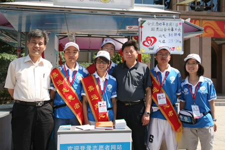 最让人感动的一幕发生在学院路北口服务站。该站设在过街天桥上,整天曝露在阳光下,即便配备了遮阳伞,依然十分炎热。但我校志愿者兢兢业业地坚守在岗位上,认真地为过往人群提供咨询服务,坦然地迎接着大家或赞叹或欣赏的目光。朱书全了解了志愿者所在的学院、工作时间等情况,他深为同学们的敬业精神所感动,希望大家再接再厉,继续做好奥运志愿服务工作。