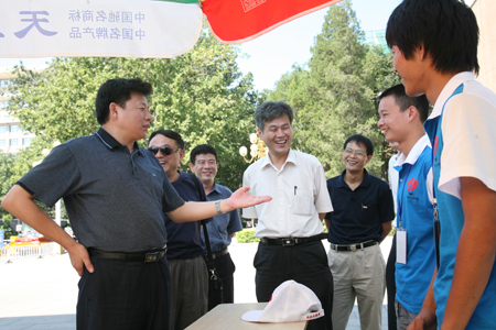 随后,校领导又看望了在校内设置的安保志愿者服务站。针对校内安保志愿者工作性质的特殊性,杨仁树表示,校内安保志愿者和和其他志愿者一样,都是北京2008年奥运会志愿者团队的重要组成部分,承担同样的责任和义务,享有同样的荣誉,希望大家安守岗位,认真做好服务工作。