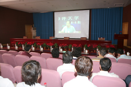 7月9日上午,根据学校2008年干部培训班的安排,全校副科级以上干部和副高职称以上教师,集中观看了中共中央党校赵振华教授的《关于当前我国宏观经济形势》的录像报告。副校长范迅、王忠强、校党委副书记朱书全一同观看了录像报告。朱书全主持会议,并就本次培训有关工作做了强调。