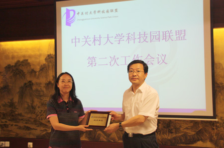 6月26日下午,在清华科技园举行的中关村大学科技园联盟第二次工作会议上,经14家理事单位现场表决全票通过,我校中关村能源与安全科技园、中国矿业大学留学人员创业园成功加入中关村大学科技园联盟,成为联盟理事单位。与我校科技园一起成为会员单位的还有中央财大科技园和中国政法科技园。会议为新加入联盟的三家科技园举行了授牌仪式。