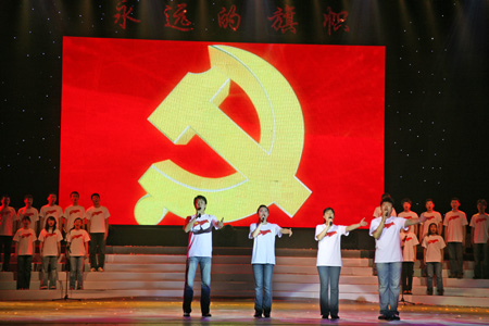 《铸就》篇回顾了中国共产党建党初期经历的艰苦与磨难,展现了共产党人追求真理、不畏艰险,带领中国人民奔向光明的伟大历程。《激励》篇展现了不同时期共产党员冲锋在前、迎难而上,发挥先锋模范作用的风采,特别表现了北京高校师生党员积极参与抗震救灾的感人事迹。《辉煌》篇承前启后,不仅弘扬了桃李芬芳的师德,而且展示了北京奥运志愿者的灿烂微笑,表达了北京高校师生“奉献、友爱、互助、进步”的服务精神和喜迎新时代、再创新功勋的豪情。