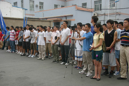 6月25日下午,我校奥运会志愿服务出征仪式在学十楼东侧举行。校奥运志愿工作领导小组副组长、校党委副书记朱书全出席出征仪式并讲话,绿色家园媒体村运行团队执行副总经理唐鸣,校奥运会志愿者工作领导小组相关部门负责人,校奥运会志愿者工作团队指导员、领队及我校500余名志愿者参加了出征仪式。