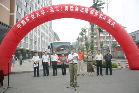 仪式上,朱书全代表学校党委和行政向即将参与奥运志愿服务的志愿者们表示亲切慰问,并致以崇高的敬意,向为学校志愿者工作给予大力支持的全校师生员工表示衷心感谢。他对志愿者们提出三点希望:一是要牢记时代使命、学校使命。作为新时期的大学生,身上赋有实现中华民族伟大复兴的神圣使命。志愿者们将代表学校万名师生员工的形象,希望进一步增强爱校情怀,努力把百年矿大最美好的一面充分展现给世人。二是要勤奋工作、科学工作。志愿者在服务中将面临各种各样的挑战与困难,希望继承和发扬我校艰苦奋斗的创业精神和迎难而上的拼搏精神,努力克服困难,勇于接受挑战。认真做好每一件事,注意每一个细节,努力研究新情况、探索新问题,为每一项工作做好充分准备。要充分发扬团结协作精神,服从命令听指挥。要加强沟通和协调,及时反馈情况,把问题消灭在萌芽状态。要注意安全,重点是注意饮食安全、交通安全和身体健康,调节好日常生活。三是要勤于总结、不断提升。参与奥运会志愿服务对同学们来说是第一次,志愿者们在实践中及时总结,使志愿服务工作中不断进步,最大限度地减少遗憾,进而展现我们最高服务水平和最完美的形象。希望志愿者们把每一个激情体验都内化为自身宝贵的财富,不断升华精神和意志,增强成才意识和志愿服务理念。他预祝志愿者们顺利完成任务,学校期待志愿者们的凯旋归来。