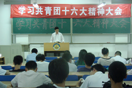 6月17日下午,校团委在教学实验楼106召开学习共青团十六大精神大会。各学院团委委员、青年教职工团员、各基层团支部书记、校学生会主要学生干部共200余人参加了会议。