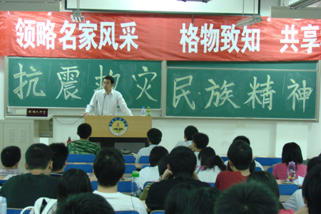 5月16日晚,校团委在教学实验楼106举办“纳雅大讲堂”2008年第三讲——“抗震救灾与民族精神”的讲座。著名经济学家、北京航空航天大学经济管理学院研究员韩德强教授应邀主讲。我校300余名学生聆听了讲座。