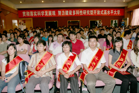 5月22日下午,校团委在交流中心报告厅举行2008年“五四”表彰大会。校党委副书记朱书全出席大会并发表重要讲话,各学院党总支书记及学校相关部门负责人出席了大会。大会由校团委书记杨庆舟主持。我校200余名团员参加了大会。