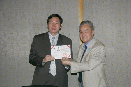 5月12日,国际矿山测量协会(简称ISM)副主席俞昶兴教授受Kalman Baratosi主席委托,来我校向戴华阳教授颁发委员证书。这是我校教师首次当选该协会委员。证书颁发仪式在国际交流中心会议室举行。