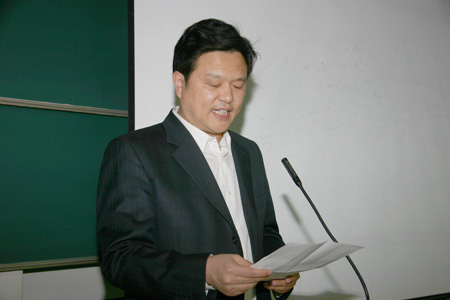 5月13日下午,由理学院主办的数学知识讲座在教学楼106举行。中国科学院院士陈木法教授应邀作报告。校长乔建永主持了讲座,理学院师生200余人聆听了报告。