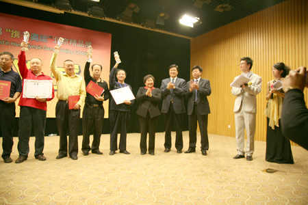 最后,获奖代表和颁奖嘉宾一起合影留念。颁奖晚会由我校学生肖燕和朱斌主持,赢得了观众的肯定和好评。