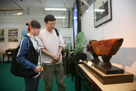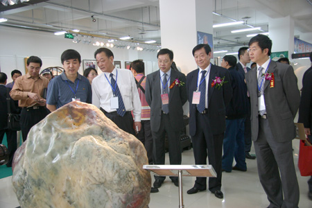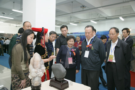 在参观过程中,各位嘉宾认真听取了工作人员的介绍,不时为精美的石头发出阵阵赞叹声,为大自然的神奇所叹服。许多观众纷纷拿起手中的相机,或拍下精美的观赏石,或在观赏石前合影留念。体现奥运主题的“2008北京”、“舞动北京-中国印”、“人文奥运”等珍稀少见的特种石格外引人瞩目,让游人驻足留恋。