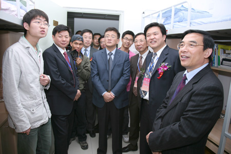 5月8日上午,出席中国观赏石博览会•2008携手奥运北京精品展的中共北京市委副书记、市政法委书记、市教育工委书记王安顺考察了我校大学生综合公寓楼,与学生进行了亲切交谈,肯定了我校在学生宿舍实施精细化管理的做法,并就加强辅导员队伍建设提出了指导性意见和建议。北京市委教育工委常务副书记张建明,我校党政领导杨仁树、乔建永、范迅、姜耀东、王忠强、朱书全陪同考察。