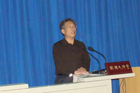 朱书全在仪式上指出,“纳雅大讲堂”的设立填补了学校成体系讲座的空白,希望同学们读万卷书、听百家言,真正做到“察纳雅言,领略名家风采;格物致知,共享学术盛宴”,不断完善知识结构,拓宽知识面,做到全面发展。要结合大学生实际,办出特色,不断提升档次,丰富大学生精神生活,形成我校又一品牌文化活动。朱书全还就近期国内外形势作了分析,要求广大同学理智爱国,维护校园的安全与稳定。