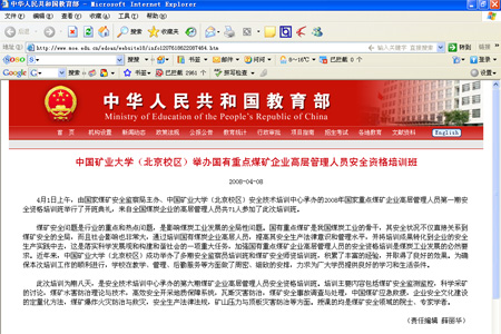 【教育部网站】中国矿业大学(北京)举办国有重点煤矿企业高层管理人员安全资格培训班