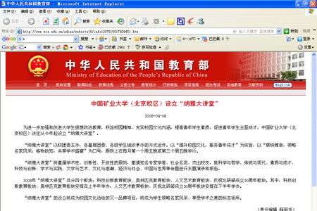 【教育部网站】中国矿业大学(北京)设立“纳雅大讲堂”