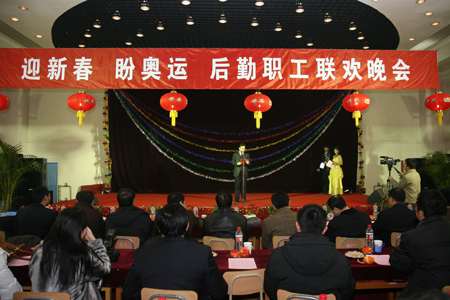 1月15日晚上,迎新春盼奥运后勤员工联欢会在我校学生第四食堂举行。党委书记张保军、副校长杨仁树、及有关部门负责人应邀观看了联欢会。整台晚会由后勤员工自导自演,歌颂了学校的发展,展现了后勤员工的风采。
