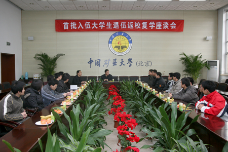 学生工作处处长乔红兵主持了座谈会。化环学院党总支副书记陈浩、力建学院党总支副书记、副院长卢梅分别发言,肯定了三位同学的成绩,并提出了希望。他们所在班的辅导员、团支部书记和班长等也分别发言,对他们加入新的班集体表示欢迎,并对他们的部队生活表示了向往和敬佩。